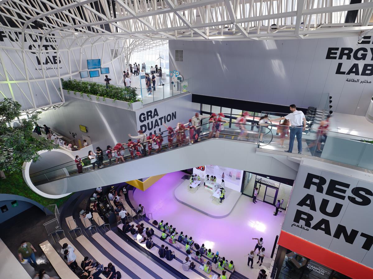 Structural Sustainability. Three cubes had been stacked on pinnacle of a plinth with different functions (restaurant, pre-show, office, back-of-house) shaped as an summary landscape. This created a massive quantity on the centre, and a roof creates coloration and comfort – a technical cloud. A sandwich of 3 parts: landscape – stacked cubes – roof. People among nature and generation. The smart positioning of the stacked cubes is pushed with the aid of using nearby weather and functions passive power-saving functions that lessen the effect of direct daylight, generate herbal coloration, lower the warmth load and optimise the indoor weather. This sensible introduction of coloration with the aid of using the constructing factors additionally makes “hybrid” air con possible. It additionally references the layout of the nearby courtyard house, with closed outdoors facades and rooms orientated closer to an internal airspace that speak in confidence to every different. A hybrid facade minimises the experience of constructing bulk and creates an iconic framing of the area. At the higher degree a dynamic association of 900 vertical metal poles, a woodland of bushes An opaque, trapezoidal single-layer ETFE membrane may be opened and closed, aware of distinct climate situations at some stage in the six-month Expo period, which includes sandstorms and cooler days, and minimises the want for air con.