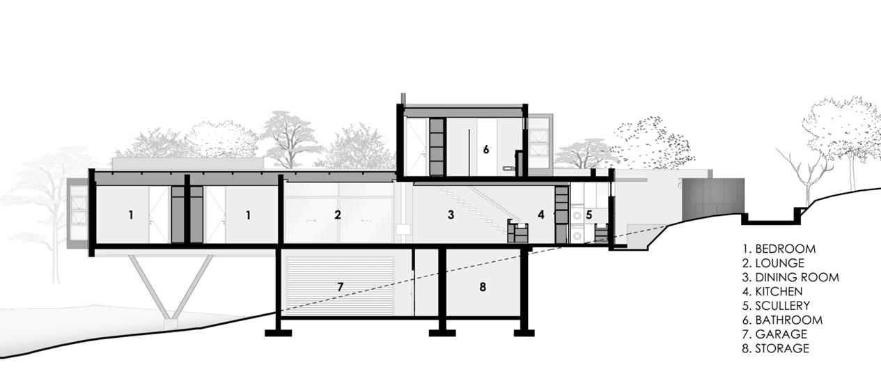 The natural landscaping around the house will be restored after the first rainy season. Architecturally, Brutalist's design approach prioritizes bare building materials and structural elements over decoration and strives to create simple, honest and functional buildings with overall visual consistency.