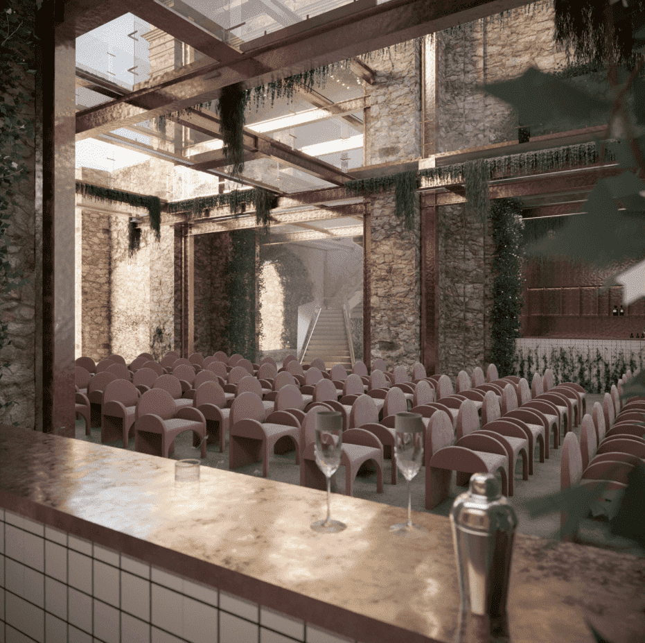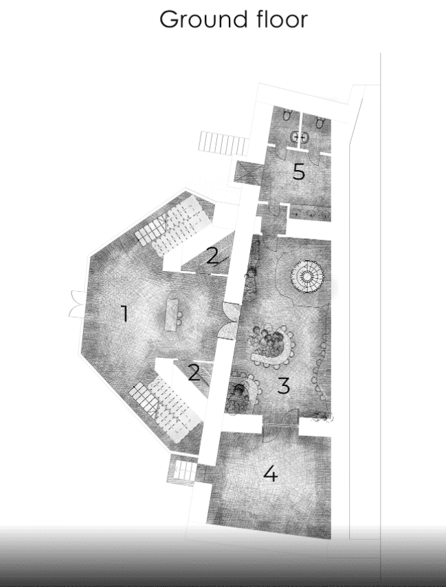 The interior design aligns with an exterior, by using glass as a main material we tried to avoid conglomeration of the constructions and gangways. The main feature of the redevelopment was a radical change in the orientation of functional spaces. For a long period of time we had been thinking about how to accommodate everything in the most convenient way and finally went from the method "how it cannot be". In this version, the main entrance is organized from the apse, and the narthex is given to the artist rooms. The existence abundance of greenery in the interior shows that nature always prevails over the people creations, but at the same time it forms the dynamic of the interior and give us a sense of calm. All in all our project of regeneration of the fallen church is based on the method of devizualization of the new structures and on the thematic incorporation of the architecture and nature to save the essence of “genius loci”.